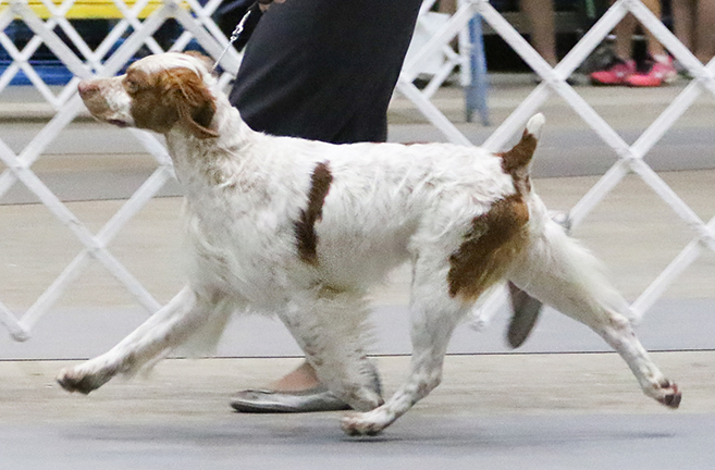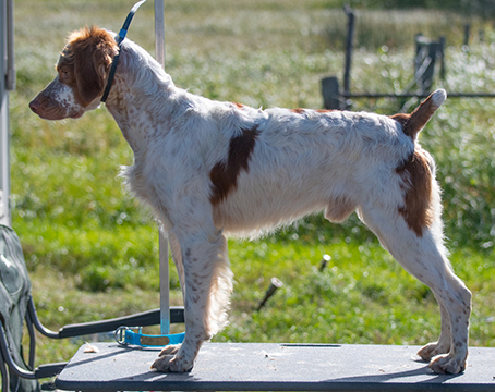 Breeder/Owner: Jessica Carlson Click here to view Dennis's pedigree Dennis was our top pick from a highly anticipated breeding of our special girl, Dani to ABC & Brittany Field Trial Hall of Fame NFC/DC/AFC Tequila's Joker. The only roan of the 5 pups born, Dennis's call name is after the world record holder for the marathon. Dennis showed great early promise, finding and pointing wild sharptail grouse at our summer camp in Montana as young as 4 months old. He dabbled in field trials as a juvenile, then spent a season of hunting wild birds in Idaho with our good friend Katherine Thompson. Dennis is all business in the field with tremendous style on point, with a very sweet and loving personality. Dennis is a strongly built, clean moving dog I was proud to finish in the show ring from the Bred By Exhibitor class. He is one of three show champions from this breeding. His first litter was born in May 2022 out of FireStarter's Guilty Pleasure. Most of these pups went to hunting homes where they are making their owners very happy, while client Pam Baird claimed the adorable liver roan female and has kept her with us to run in field trials. Tequila Shameless, known as Reo, had a great start at our summer camp in Montana in 2022 and won her first two puppy stakes in field trials at 9 months old.