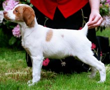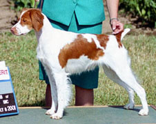 Breeders: Dawn & Joe Droel Click here to view Halley's pedigree My mother had long waited for a Chase daughter, and when Chelsea passed she decided the time had finally come. An accidental breeding of Chase's son Junior to the very beautiful Classy produced 5 daughters, and we decided to take a chance on a Chase granddaughter. We named her for Halley's Comet. Halley did well in the field, scent pointing from the first time I ever had her out. On natural ability, she finished her Junior Hunter title easily and placed in her first Derby field trial stake in 2002. Halley was green broke in the field by Sheldon Twer. She was a great bird dog, and learned to be steady to wing and shot, but my schedule and priorities precluded her from competing in adult stakes. She became my all-time best "puppy educator" in the field. The rest of the time she was Queen Bee at home. Halley had a fabulous, steady and calm temperament and proved herself to be an excellent producer of intelligent, biddable, hard-working and bird loving Dual quality Brittanys. Halley's first litter, by (later FC/AFC) KB's Shadow-Dancer, was born September 25, 2005 and her second litter by DC/AFC Redlines Tequila Smoker was born September 5, 2006. She had one Dual Champion out of each litter; see below for her winning offspring. We are very thankful for all that Halley gave us in her 13 years, and for the qualities we can still see in her descendents today! See a list of Halley's accomplishments below.