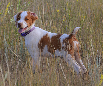 Breeder/Owner: Jessica Carlson Click here to view Mattie's pedigree Tristyn's first litter came at a time when I just wasn't ready for another dog, but I later wished I would have kept one for myself. So the following year I repeated the breeding to Am/Can DC Kinwashkly Dirty Ned Pepper, with the intention of keeping one this time! Mattie was the only girl in the second litter, and I had several females already so I didn't plan on keeping her, but in the end could not resist her! And I'm so glad I kept her, as she is turning out to be everything I hoped for from this litter, and more. Mattie has many of the best qualities of both of her parents; she is a very smart, independent-minded, well built and powerful running girl. She is full of life and joy and always puts a smile on my face. Mattie is on the smaller side and I chose not to run her in trials until 2015, but she soon earned multiple Puppy placements and then her Puppy points in March, 2015. Mattie's show debut was at the 2014 ABC National Specialty show, where she won the 6-9 months puppy class. Despite having some minor scars from burns she obtained in our fire of October 2015, Mattie came back stronger than ever and finished her show championship with 5 major wins, the last being a 5-point win including Best of Opposite Sex over a special. In March 2015, Mattie followed in her grandma Taryn's footsteps by winning the Texas Open Brittany Derby Classic! Mattie got some placements in adult stakes but eventually decided she'd most like to be a spoiled house dog, and she deserves to be, so she got her wish and retired in Florida!