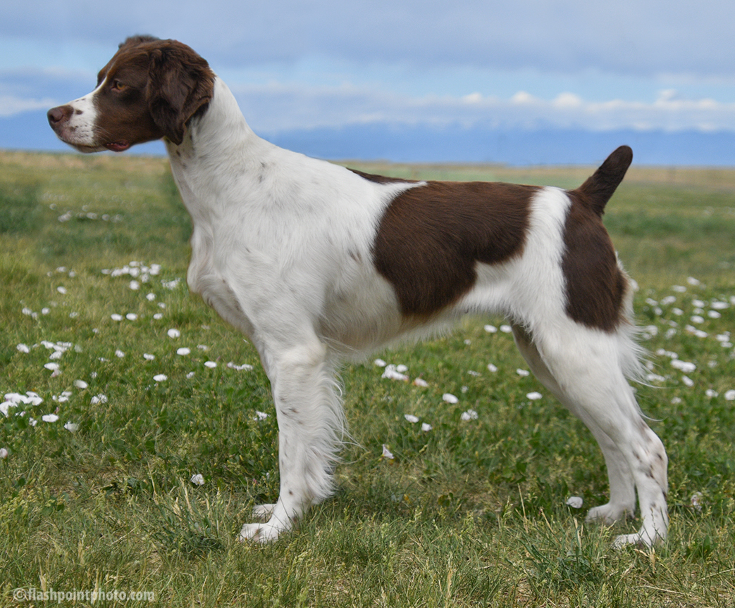Breeder/Owner: Jessica Carlson Click here to view Sundae's pedigree Sundae was my pick puppy from a much anticipated breeding of our Dani to NAFC/GFC/GAFC Spanish Corral's Sonny Patch. Sundae is everything I hoped for from this breeding - beautiful, smart, full of personality, big running and independent in the field, stunning on point! She earned her Puppy points easily, but her Derby time was interrupted with an unplanned litter by Treasure States Toby Mac Daddy. Their 6 sons from this litter are now hunting and playing in 6 different states. Sundae got to show a couple of times in 2021 and earned her first show point, then got back to business in the field getting steady to wing and shot in preparation for adult stakes. She returned to the show ring in the summer of 2022 to complete her show title, and is continuing in the field working towards her Dual Championship. Her first "planned" litter, was sired by GFC/DC Almaden's Under Lock And Key in August 2023, and five of those six will be competing in field and show in the future. Unfortunately when they were weaned, Sundae ate a foreign object and got an extremely bad case of mastitis while at the vet, forcing her to have two surgeries and missing out on her fall trial season, but we have high hopes for her in 2024! Sundae's littermates include CH/AFC Alar's Patch of Blue Sky (FC pointed), CH Anchor's Lucky Number Seven (dual pointed), Dance The Dust Off JH (field & show pointed), and Reidyhill's Down And Dirty (adult field points), whose pictures can be seen at the bottom of Dani's page.