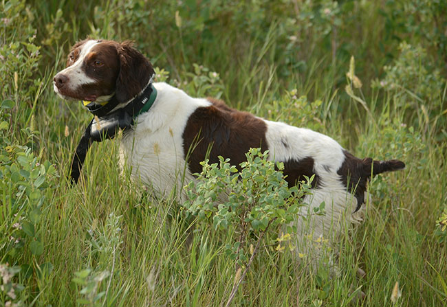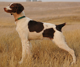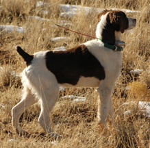 Breeder/Owner: Jessica Carlson Click here to view Twister's pedigree Twister was my keeper from Taryn's litter by DC Almaden's River of Shadows. We started slow with Twister, but after her first summer camp she came on strong in the puppy stakes during Fall 2011. She placed third in a big stake and then won two more in a row. Twister competed in Derby stakes along with her brother Tequila Scorcher ("Lincoln", owned by Bernie Crain). Lincoln grew up to win the prestigious US Open Brittany Championship in 2016! Their two sisters, Ch. FireStarter's Tequila Torrent and Ch. Tequila Tempest both completed their show titles with ease; they can be seen on our Champions page. After getting a season of hunting with our friend Katherine Thompson in Idaho, Twister matured into a fine bird dog with impressive style on point. She has become a terrific mother, her first litter being born in January 2014 by DC/AFC Bandit's Cinderella Man. Most of these pups are in active hunting homes and have made their owners very happy both at home and in the field. Ch. Bandit's Mr Twister was the star of this litter, earning his Puppy and Derby points in short order and his first adult placement in Amateur All Age when he was still 14 months old! Buck then earned his show championship at 17 months old with a Best of Breed win and finished by going Winners Dog at a specialty show. He didn't miss a beat, returning to field trials in August and earning more placements in Open and Amateur All Age competition. Sadly, Buck was tragically killed in an accident just after he turned 2 years old. We know he had so much more to show the world. Twister found her place with us as a dam and occasional "puppy teacher" in the field during our summers in Montana. After her first litter we opted for roan sires. She has two litters sired by CH Hoochie Coochie Man and one by DC Breton's Sam I Am. All of her pups are treasured companions with wonderful temperaments and great hunting ability, and some have gotten a little competition under their belt as well. Her last litter was born 7/31/17 by DC/AFC Beaver's Straight Arrow. After rasing these three last boys, Twister retired to the "good life" with my mother and other family in California.