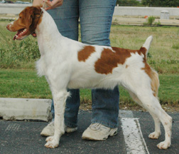 Breeders: Dawn & Joe Droel Click here to view Halley's pedigree My mother had long waited for a Chase daughter, and when Chelsea passed she decided the time had finally come. An accidental breeding of Chase's son Junior to the very beautiful Classy produced 5 daughters, and we decided to take a chance on a Chase granddaughter. We named her for Halley's Comet. Halley did well in the field, scent pointing from the first time I ever had her out. On natural ability, she finished her Junior Hunter title easily and placed in her first Derby field trial stake in 2002. Halley was green broke in the field by Sheldon Twer. She was a great bird dog, and learned to be steady to wing and shot, but my schedule and priorities precluded her from competing in adult stakes. She became my all-time best "puppy educator" in the field. The rest of the time she was Queen Bee at home. Halley had a fabulous, steady and calm temperament and proved herself to be an excellent producer of intelligent, biddable, hard-working and bird loving Dual quality Brittanys. Halley's first litter, by (later FC/AFC) KB's Shadow-Dancer, was born September 25, 2005 and her second litter by DC/AFC Redlines Tequila Smoker was born September 5, 2006. She had one Dual Champion out of each litter; see below for her winning offspring. We are very thankful for all that Halley gave us in her 13 years, and for the qualities we can still see in her descendents today! See a list of Halley's accomplishments below.