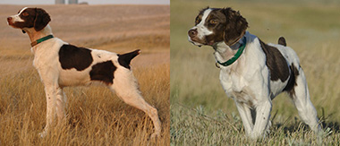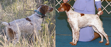 "KARL" was a precocious pup, earning his show championship from the 6-9 months puppy class and then a major towards his Grand Championship at 9 months! This was truly impressive not only for his age, but especially considering that Karl is a roan (less common in the show ring) and from mainly field trial lines. Although his field trial career is just getting started, Karl had multiple Derby placements and already has multiple placements in Gun Dog stakes as a 2-year-old. He is a hard runner and an outstanding bird finder, with a magnetic personality that makes friends wherever he goes! Karl's first litter with Twister demonstrated that he passes on many of his best characteristics, including his wonderful temperament and natural abilities in the field. Click here for more pictures of Karl "TWISTER" is a daughter of our first two Dual Champions. Her dam Taryn is the top winning hour All Age Brittany female in breed history and also the only Dual Champion female to ever win the American Brittany Club's national specialty show. Twister's sire River is equally excellent in field trials, hunting, conformation, and at home. Twister has her puppy points in field trials and spent a season hunting in Idaho, where she learned some great lessons on wild birds. She is very stylish on point and has a very sweet temperament. Twister's two sisters are both show champions, while her brother is on the way to his Field Championship and won the prestigious US Open Brittany Championship in 2016!. Twister's first litter produced several great hunting companions as well as a great young competitor, Ch. Bandit's Mr Twister who earned his Puppy and Derby points as well as his first adult placement by 14 months of age. He followed up by completing his show title at 17 months old and then continued to excel in the field. Click here to view Twister's page Karl & Twister's first pups, born February 2015, have been making their owners happy in early field and show training, as well as at home! Their daughter, Mud On The Tires impressed her field trainer on both wild and released birds as a 4-5 month old at summer training camp in Montana. She then began competing in field trials where she has been a consistent contender in Open Puppy stakes. "Muddy" has a personality that has gained her admirers wherever she's been, she even has a small self-proclaimed "fan club"! We love the personalities on these dogs and combined with their natural talents in the field, it's no wonder why this litter needed to be repeated! * ALL PUPPIES ARE SPOKEN FOR *