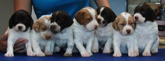 | ROWDY is a lovely Dual Champion who finished his show championship with ease, and his Field Championship with two big wins. He placed 3rd in the 2009 National Field Championship with handler Ed Tillson, and is now back with his owners to finish up his Amateur Field Championship. Rowdy has speed, determination and intelligence in his run and hunting ability, points with style, and has a very sweet personality that makes him a lot of fun to be around. The top side of Rowdy's pedigree consists of oustanding field, show, and Dual Brittanys while his dam's side shows a strong hunting background, and dogs that have also proven themselves to be producers of excellent field trial competitors. Rowdy is OFA certified "Excellent". We have been extremely pleased with our first breeding to Rowdy out of DC Almaden's Lone Shadow Dancer (Skye's aunt), which produced the very talented and beautiful Ch. Almaden's Timber Ridge Tess. "Tess" finished her show title in 1 month and has multiple Puppy and Derby stake wins in the field. We hope for more of the same with this cross! SKYE is our first "homebred" Dual Champion! We are very proud that the combination of proven field ability, conformation, temperament, health and style came together in all the excellent qualities that Skye has brought to life. A very loving house dog when she's at home, Skye has also been a successful hunting companion as well as a strong competitor in both shows and field trials. She finished her show title easily with two wins at specialty shows, and was always an impressive contender in field trials, culminating with two major wins in Gun Dog stakes to complete her title in February 2011. She is PennHIP rated .48L/.52R (60th percentile). See more details & pictures on Skye's page. Click to view photos of this litter at: 6 weeks & 7.5 weeks |