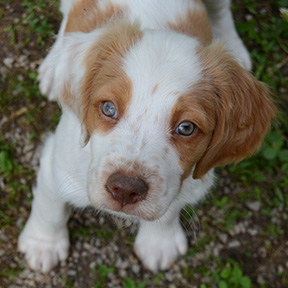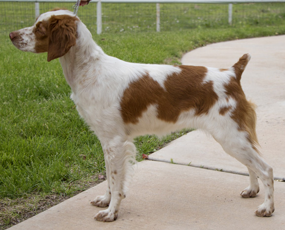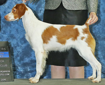 Breeder/Owner: Jessica Carlson Click here to view Mattie's pedigree Tristyn's first litter came at a time when I just wasn't ready for another dog, but I later wished I would have kept one for myself. So the following year I repeated the breeding to Am/Can DC Kinwashkly Dirty Ned Pepper, with the intention of keeping one this time! Mattie was the only girl in the second litter, and I had several females already so I didn't plan on keeping her, but in the end could not resist her! And I'm so glad I kept her, as she is turning out to be everything I hoped for from this litter, and more. Mattie has many of the best qualities of both of her parents; she is a very smart, independent-minded, well built and powerful running girl. She is full of life and joy and always puts a smile on my face. Mattie is on the smaller side and I chose not to run her in trials until 2015, but she soon earned multiple Puppy placements and then her Puppy points in March, 2015. Mattie's show debut was at the 2014 ABC National Specialty show, where she won the 6-9 months puppy class. Despite having some minor scars from burns she obtained in our fire of October 2015, Mattie came back stronger than ever and finished her show championship with 5 major wins, the last being a 5-point win including Best of Opposite Sex over a special. In March 2015, Mattie followed in her grandma Taryn's footsteps by winning the Texas Open Brittany Derby Classic! Mattie got some placements in adult stakes but eventually decided she'd most like to be a spoiled house dog, and she deserves to be, so she got her wish and retired in Florida!