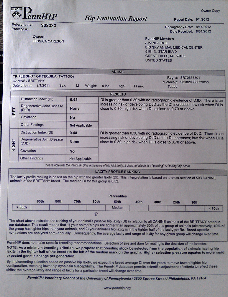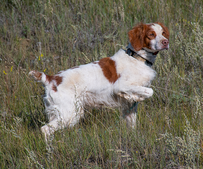 Breeder: Jessica Carlson Click here to view Tattoo's pedigree I had not planned a third litter for Taryn, but in the summer of 2011, she decided otherwise. We didn't even know the breeding took place and when we finally realized she was pregnant, figured we would have to DNA the puppies to find out who her secret lover had been! Three puppies were born the day before Taryn turned 9, and I named them Corvette, Tattoo, and Fling -- Mom's "midlife crisis" puppies! Our best guess on the sire since he was closest in proximity was Ed's dog Nitro Express, and that was confirmed by DNA profiling. Nitro was an extremely talented juvenile who always ran big and to the front, and he pointed with style. Nitro was Runner-Up at the 2006 Victoire Nationale Derby Championship, but an unpredictable incident later occurred during a training session caused an issue with Nitro that Ed decided he did not have time to work on, since he was just turning pro and needed to concentrate on his client dogs. Nitro went to another trainer who did fix the issue, but unfortunately after being consistently worked on birds in a small area for several months, Nitro never quite ran the same again. I would have preferred Taryn choose a titled dog to sire her last litter, but knowing her, I figured she was going to show me she knew more about producing good puppies than I do -- and sure enough, she turned out three very nice puppies from the breeding I never wanted! Tattoo was the only boy, and was often overwhelmed by his two naughty sisters, so our friend Katherine Thompson agreed to take him to her place in Idaho when he was 3 months old. Better known as "Zac" around Katherine's place, he spent another season there after earning all his juvenile field trial points. Tattoo got a jump start on his show title, winning a major at the Indian Nations specialty at his very first show! Tattoo had 4 majors from the 6-9 months puppy class in his first few shows during the summer of 2012, then went to work in the field. He quickly had his puppy points and then won two big Derby stakes at the first two trials in 2013 to finish out his juvenile points! Needing just 3 points to complete his show title, Tattoo was entered in two shows that summer and finished with a 5th major win to his credit. He is a big, bold runner in the field who always carries his head and tail high, and shows terrific style on point. As most of our dogs are related, we never had an opportunity to breed Tattoo until Connie Strom inquired on his half-brother Lincoln in 2020. With Lincoln unavailable, plans were made for Tattoo and Xena, with puppies born in April 2021. Three of these are now field and/or show pointed, with our Ch. Wind Mtn Tequila After Dark winning Best in Sweepstakes at the ABC National Specialty, winning her puppy points at her first trial, and completing her show title easily. This breeding was repeated in 2022 and we look forward to the debut of several of those pups in 2023!